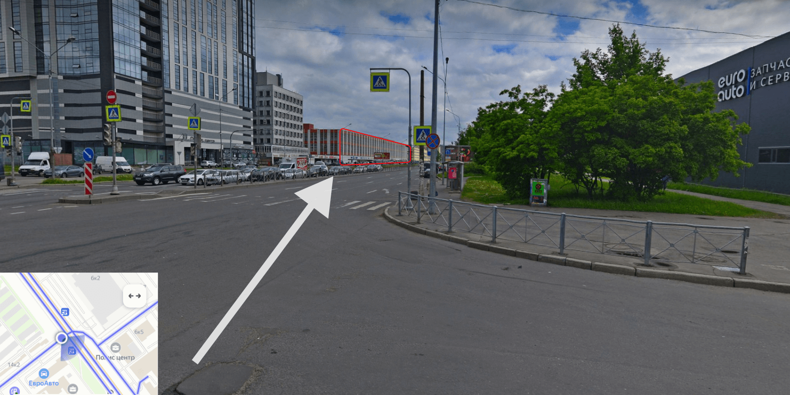 4. На втором перекрёстке, ориентир здание "EuroAuto", справа по диагонали через улицу будет бело-оранжевое здание, вам нужно примерно в его середину.