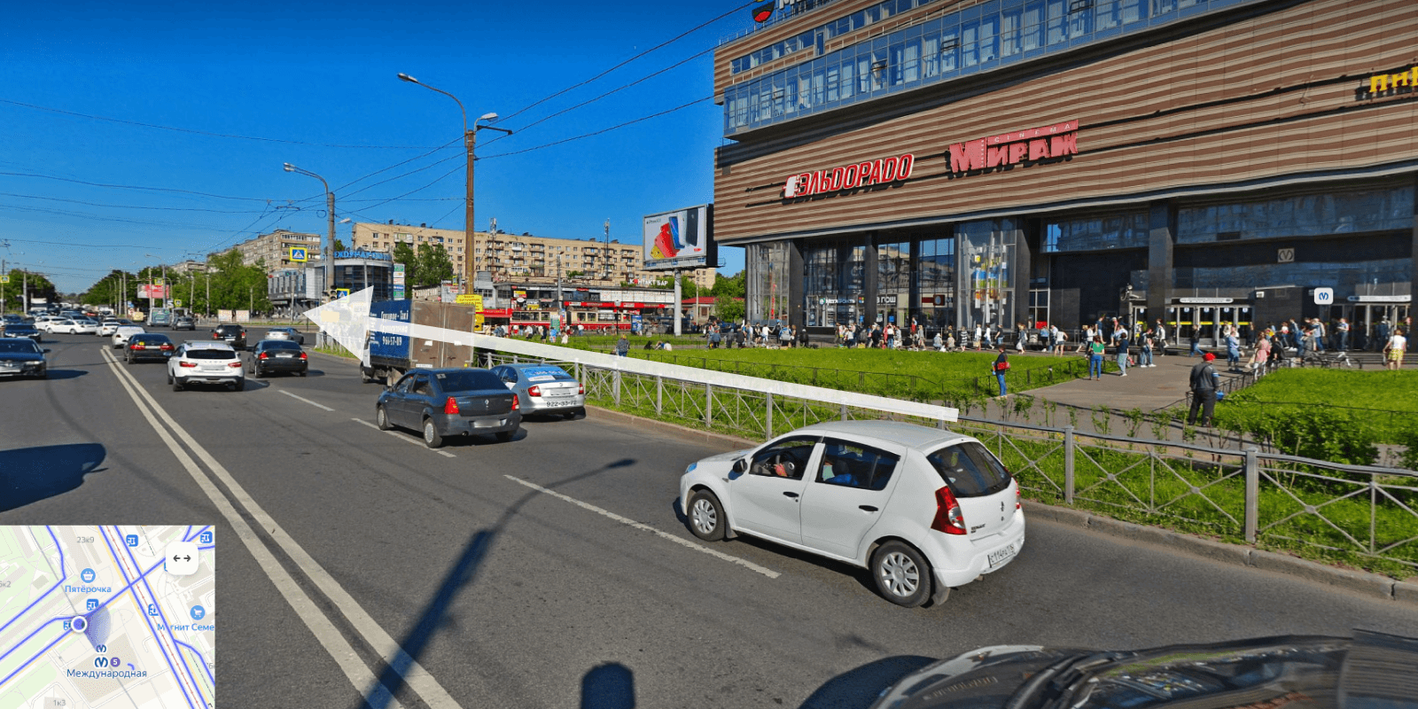 1. Выходите из метро "Международная" и двигаетесь направо.