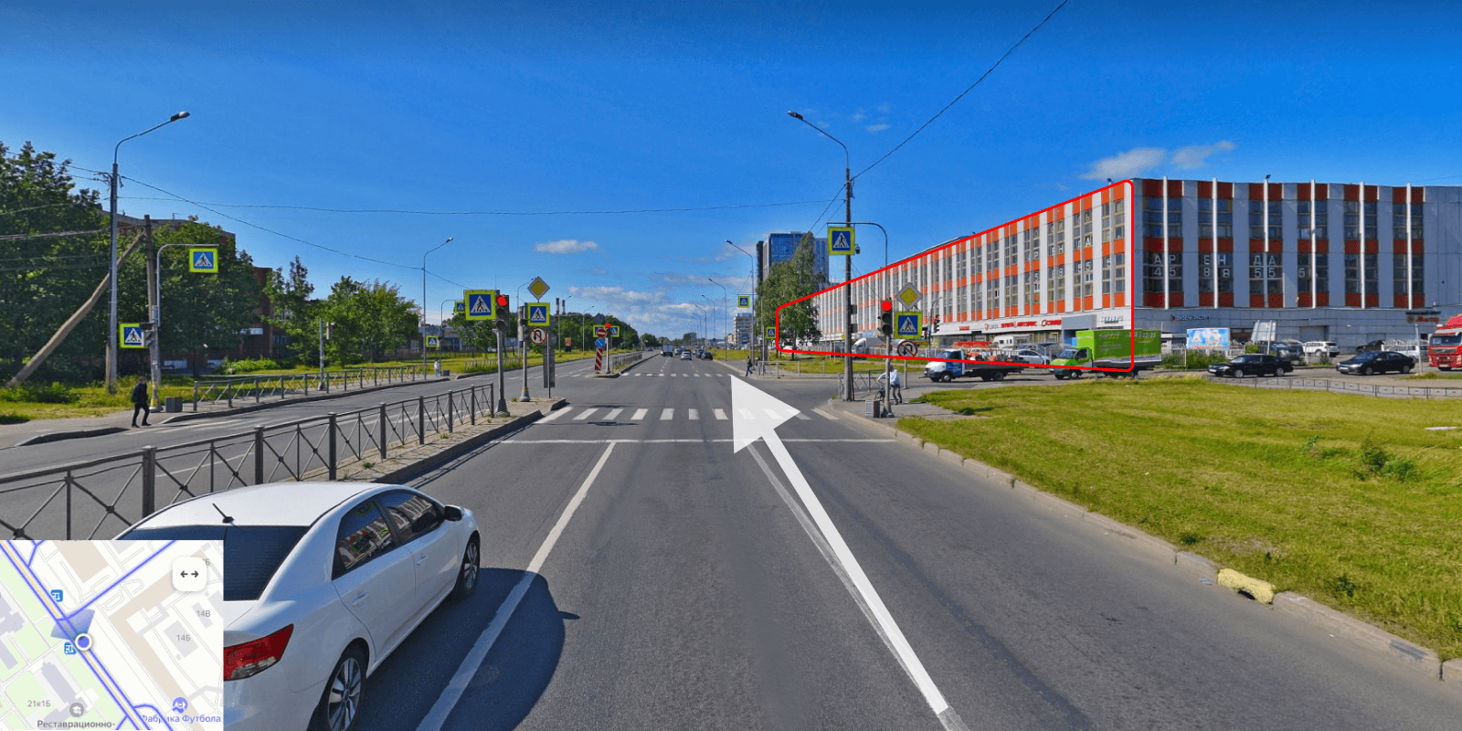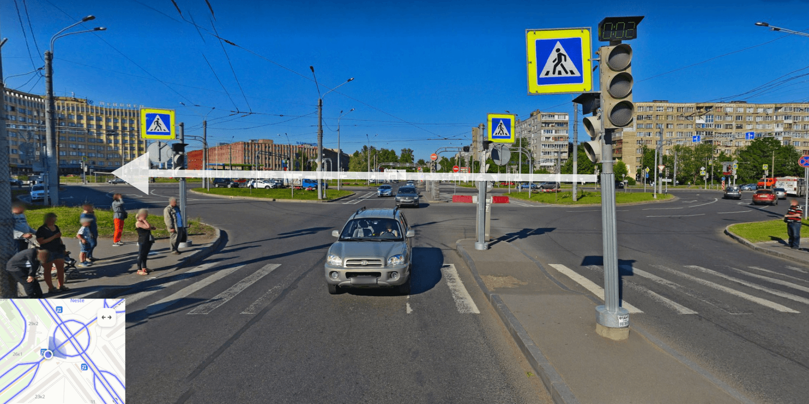 2. Двигаетесь всё время прямо, пока не дойдёте до перекрестка с круговым движением. На нем вам нужно повернуть на право на улицу "Софийская".