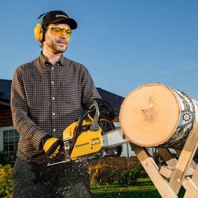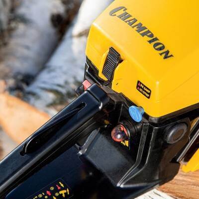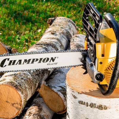Бензопила Champion 256-18 укомплектована 45-сантиметровой шиной и цепью.